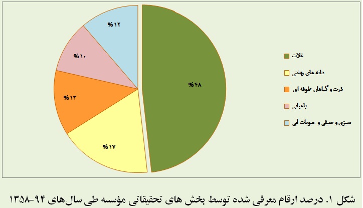 پس از پیروزی انقلاب اسلامی تاکنون تعداد 90 رقم توسط بخش تحقیقات غلات، 33 رقم توسط بخش تحقیقات دانه های روغنی، 25 رقم توسط بخش تحقیقات ذرت و گیاهان علوفه ای، 22 رقم توسط بخش تحقیقات سبزی و صیفی و حبوبات آبی و 19 رقم توسط بخش تحقیقات باغبانی معرفی شده است. شکل 1 درصد ارقام معرفی شده توسط بخشهای مختلف تحقیقاتی مؤسسه تحقیقات اصلاح و تهیۀ نهال و بذر را در سالهای پس از انقلاب اسلامی ایران نشان میدهد.